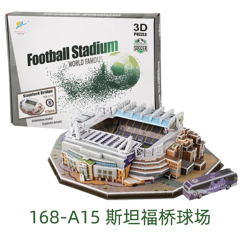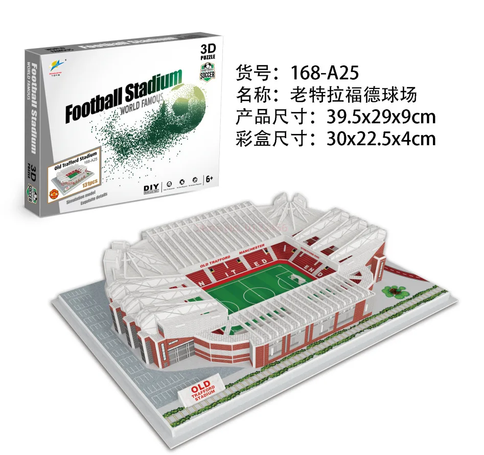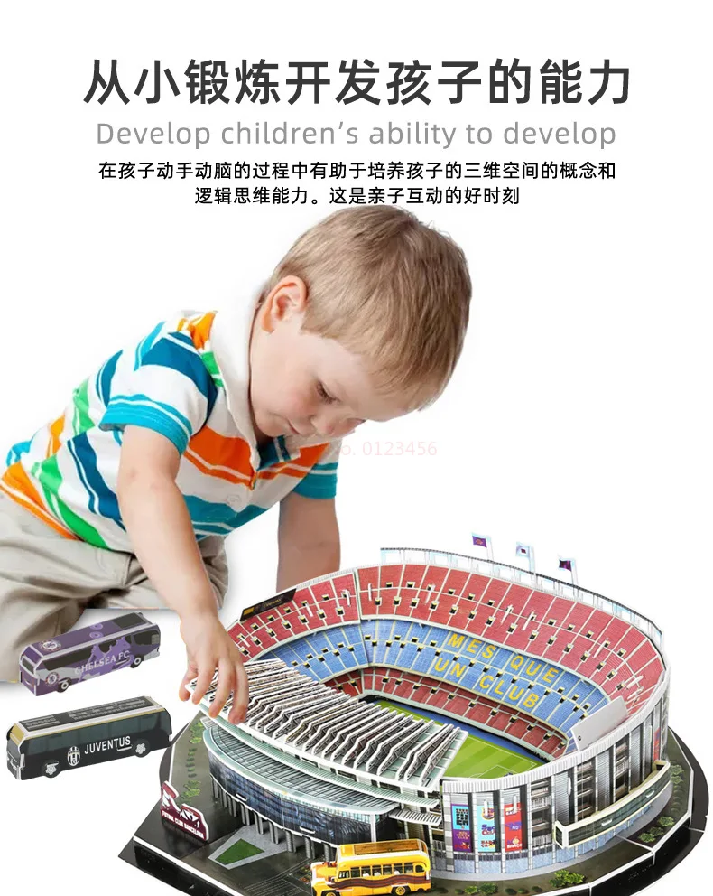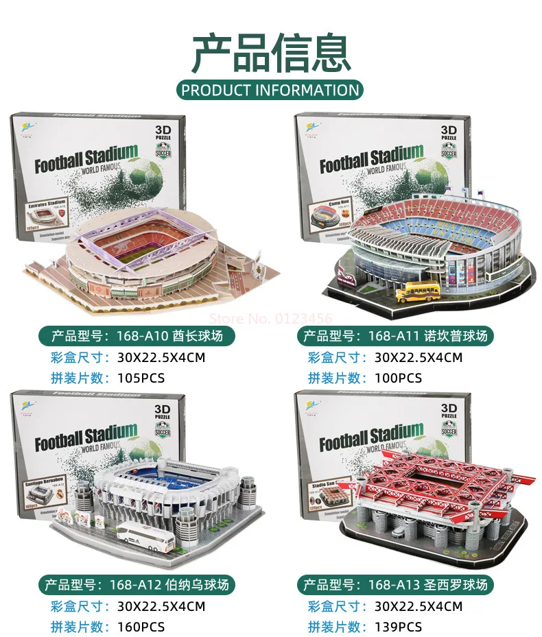 3D Football Field Puzzles Camp Nou Soccer Building Blocks Court Bernabeu Stadium Ground Old Trafford Pitches Model Assemble Toys